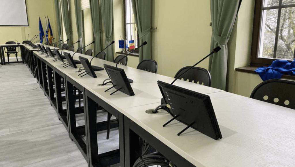 În urma reabilitării sălii de consiliu, Universitatea din Oradea a dorit transformarea acesteia într-un spațiu digitalizat care să optimizeze desfășurarea ședințelor.